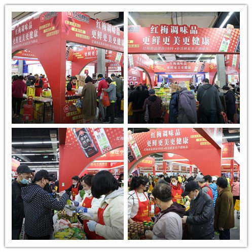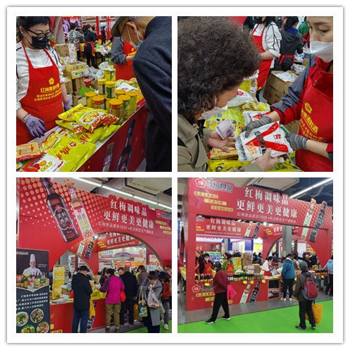 展会现场,红梅食品携红梅金奖味精、红梅薄盐鸡精、红梅食醋等全品类产品登场,吸引众多参展者前来咨询。
