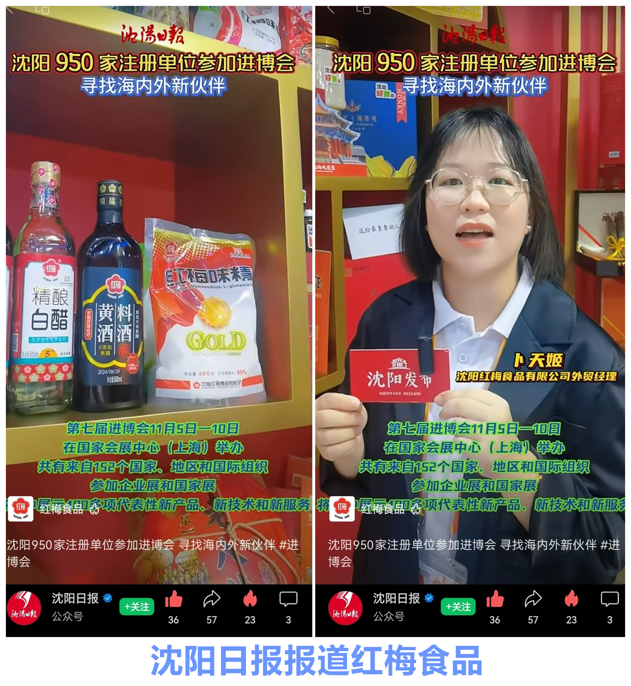 本次参加进博会,红梅食品携新推出的减盐鸡精(减盐不减鲜)、黄酒料酒(纯粮酿造),以及富含东北风味的网红产品:“蘸遍一切”的“红梅黄豆酱”亮相,吸引众多专业采购商咨询。