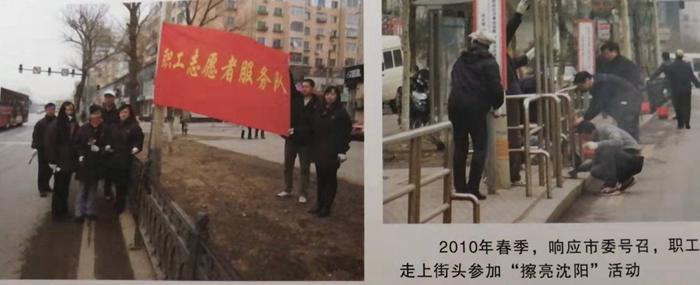 2010年春季,响应市委号召,职工走上街头参加“擦亮沈阳”活动。